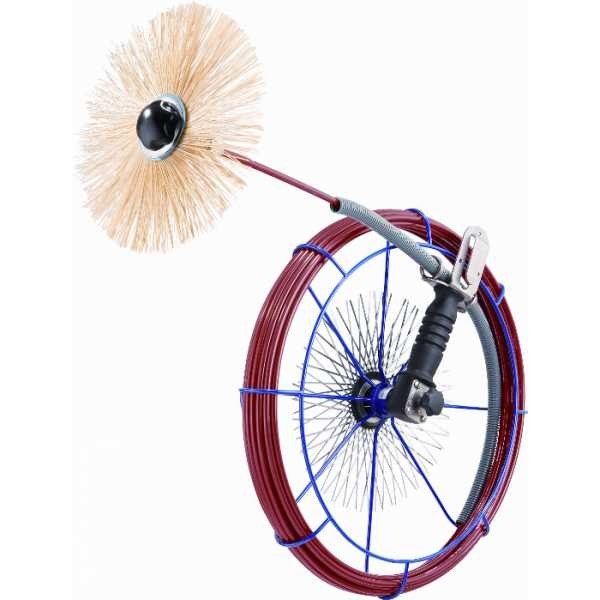 canne flexible Ø 7 mm et longueur 15 m avec indicateur métrage et deux extrémités en acier inoxydable M 10, tuyau de protection et support pour hérissons Caractéristiques techniques : Diamètre de la cage: 42 cm Largeur : 11 cm Poids: 2,1 kg Avantages: frein ajustable , avec crochet pour 2 hérissons , canne flexible et résistante , crochet pour ceinture