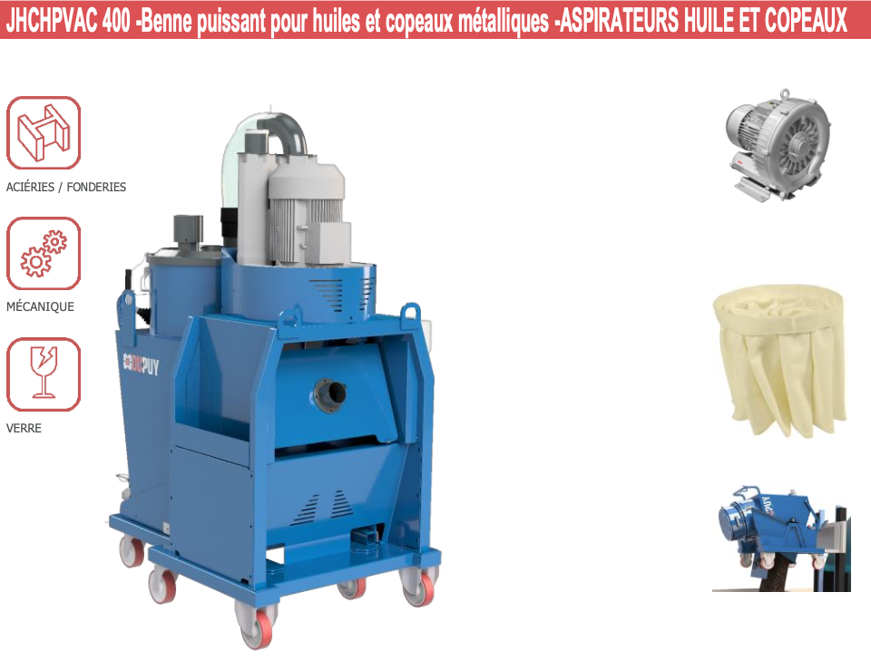Référence JHCHIPVAC400 Catégorie Aspirateur huile et copeaux