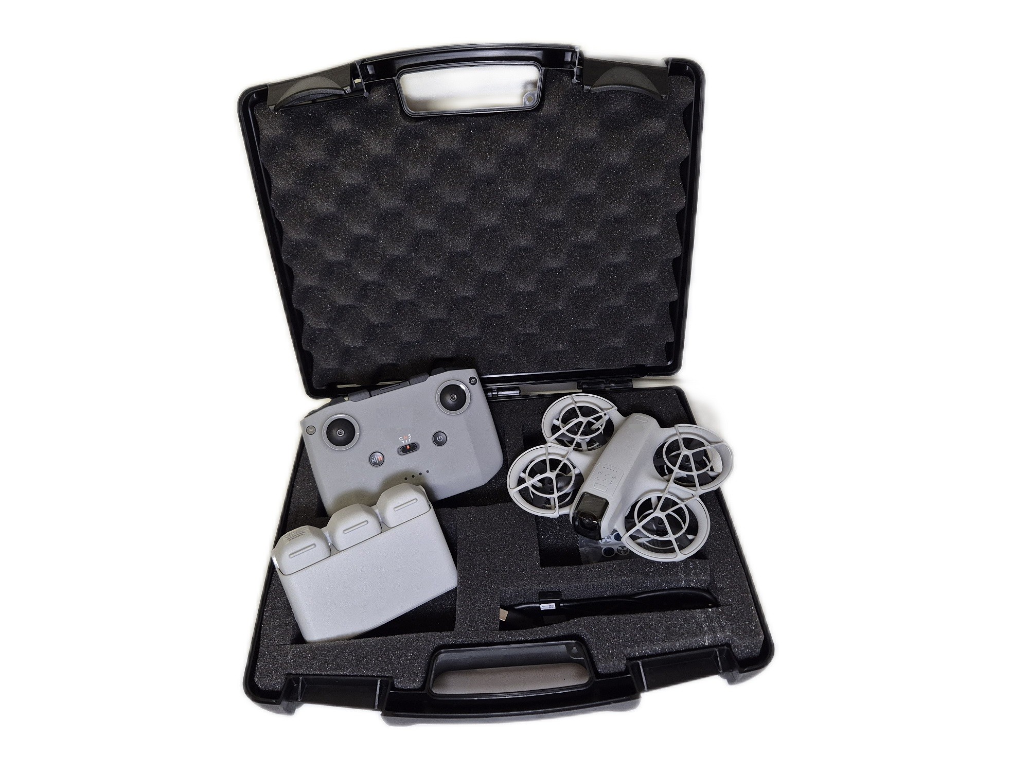 inclus: drone, chargeur, 3 batteries, radiocommande, valise de transport