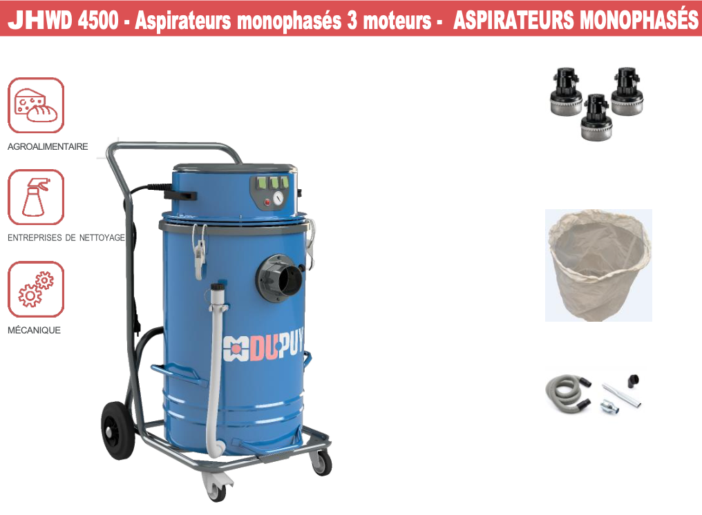 JHWD4500 - Aspirateurs monophasés 3 moteurs - ASPIRATEURS MONOPHASÉS UNITÉ ASPIRANTE
