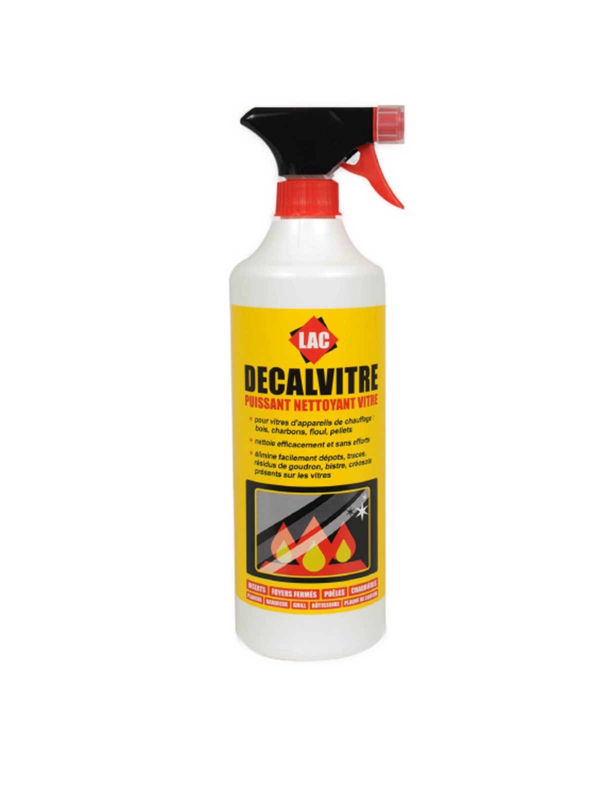 Actif sur les vitres d'inserts, poêles, cuisinières, chaudières, grils de barbecues, fours, bassines à frites.