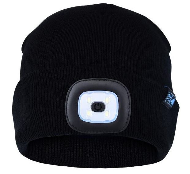BONNET ÉCLAIRANT en Acrylique Noir  avec lampe LED rechargeable intégrée, (recharge par prise USB).