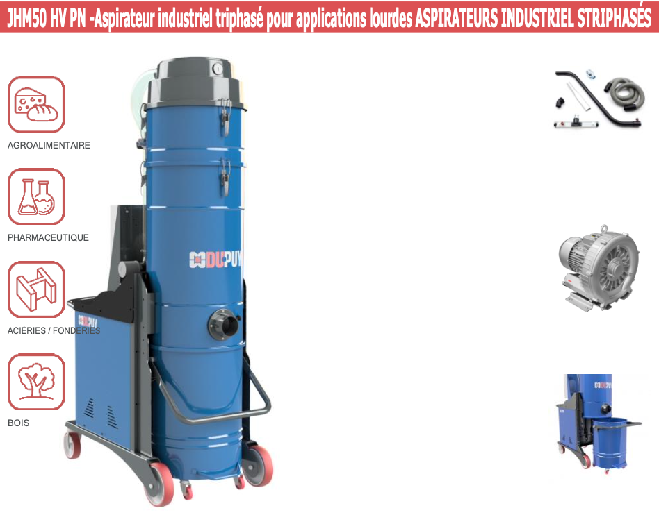 JHM50HVPN - Aspirateur industriel triphasé pour applications lourdes - ASPIRATEURS INDUSTRIELSTRIPHASÉS