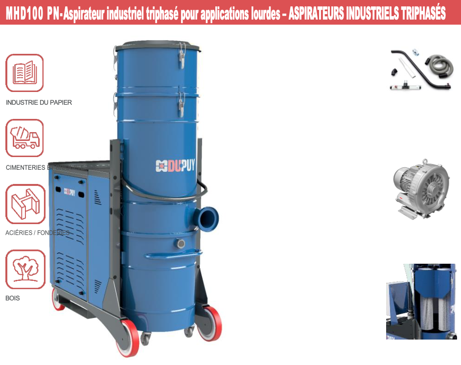 JHMHD100PN - Aspirateur industriel triphasé pour applicationslourdes–ASPIRATEURSINDUSTRIELSTRIPHASÉS UNITÉ ASPIRANTE
