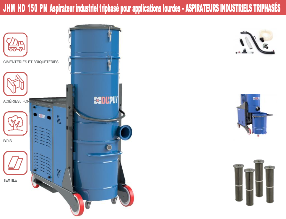 JHMHD150PN - Aspirateur industriel triphasé pour applications lourdes – ASPIRATEURS INDUSTRIELS TRIPHASÉS UNITÉ ASPIRANTE