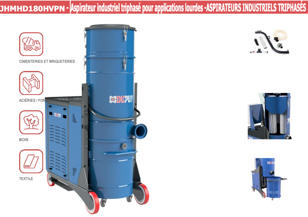 JHMHD180HVPN - Aspirateur industriel triphasé pour applications lourdes - ASPIRATEURS INDUSTRIELS TRIPHASÉS