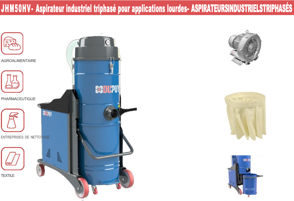 JHM50HV- Aspirateur industriel triphasé pour applications lourdes - ASPIRATEURS INDUSTRIELS TRIPHASÉS UNITÉ ASPIRANTE