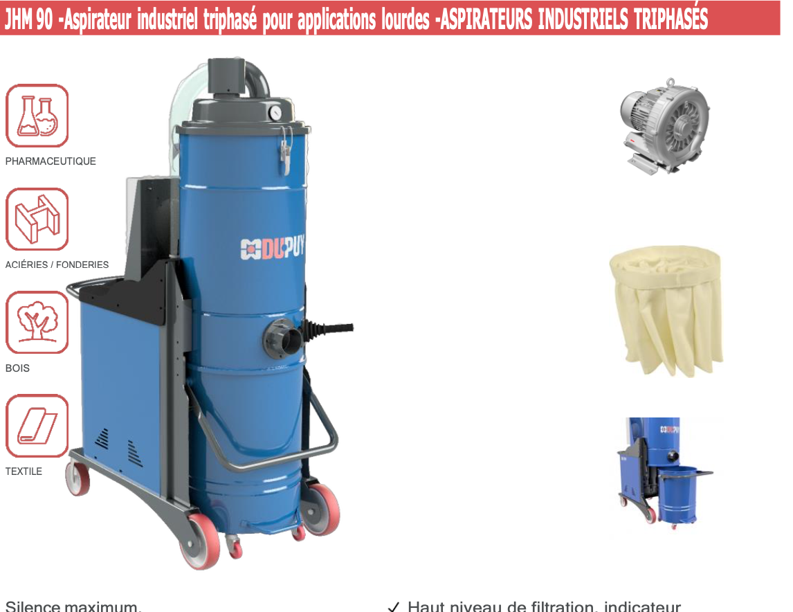 JHM90 - Aspirateur industriel triphasé pour applications lourdes - ASPIRATEURS INDUSTRIELS TRIPHASÉS